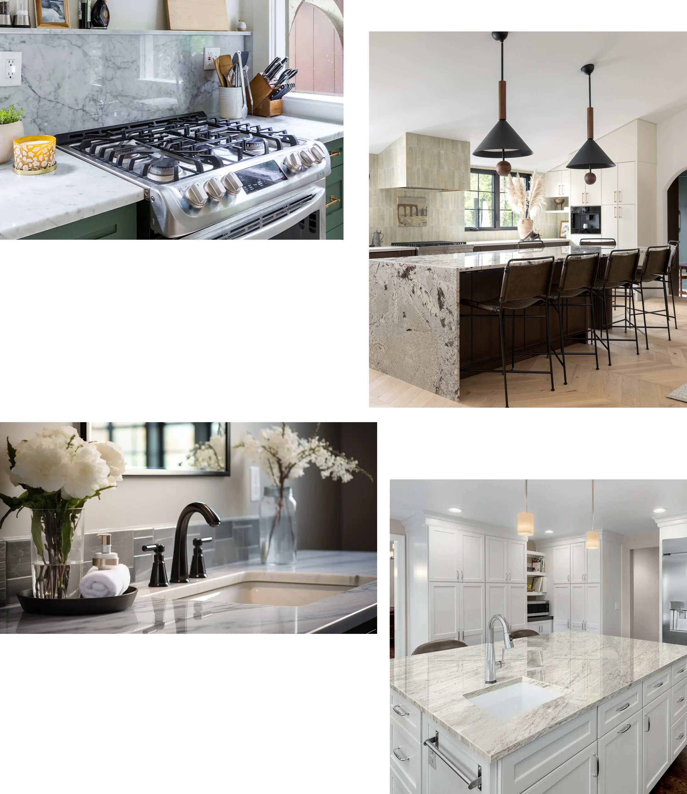Our selection includes everything from the timeless elegance of granite and marble to the contemporary charm of quartz and other specialty stones.